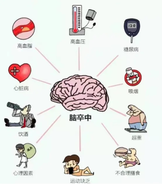 脑卒中是可防可控的。可干预的危险因素包括高血压、糖尿病、血脂异常、心脏病、吸烟、酒精摄入、不合理膳食、超重或肥胖、运动缺乏、心理因素等。