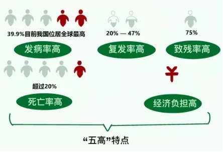 脑卒中具有发病率高、致残率高、死亡率高、复发率高和经济负担高的“五高”特点,被称为“无形杀手”,是威胁我国国民健康的主要慢性非传染性疾病之一。