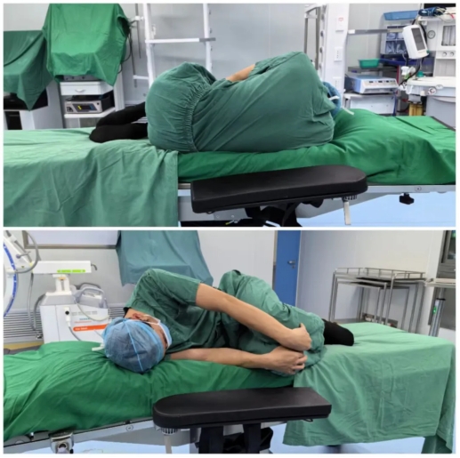 12. 如果是椎管内麻醉,麻醉医生将会在患者的后背进行麻醉,请配合摆好麻醉体位,头下弯、手抱膝,弯成像虾米样,打麻醉过程如果有头晕心慌恶心等不适,请及时告知医护人员。