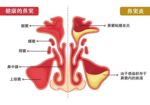 常表现为鼻塞、鼻腔分泌物增多,同时伴有面部疼痛或肿胀感,嗅觉减退或丧失等,为鼻部常见病。好发于成年人,儿童发病率较低。