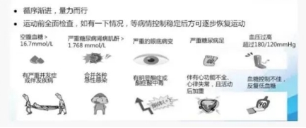 (1)运动要循序渐进,量力而行,如有以下情况,需要待病情稳定后逐步开始恢复运动。