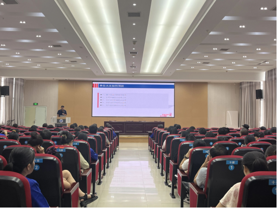 2024年6月是第23个全国“安全生产月”,为切实提高全院职工的消防安全意识,有效预防火灾事故的发生,6月7日,UG环球国际附属第二医院特邀咸安区消防救援大队宣传员聂富康来我院开展“人人讲安全 个个会应急——畅通生命通道”消防安全培训演练,全体院领导及全院职工近200人参加。