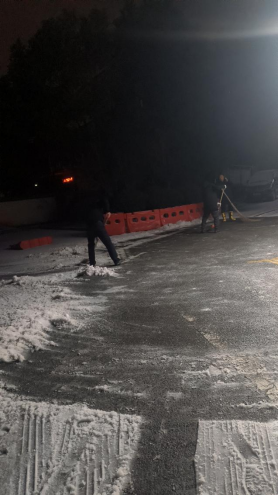 21日晚,后勤保障部全体人员坚守岗位,排查院内安全隐患,对医院路面、台阶、扶手等易发生滑倒事故的地方进行了重点防范,张贴警示标志、放置警示牌,在主干道及门诊大楼门口铺设防滑垫,清扫门急诊和周边道路积雪,做到“随下随清、雪停路通”,以实际行动确保夜间急诊就诊患者的安全出行,保持道路安全畅通。他们用不舍昼夜的付出与奉献,构筑起人民群众的生命安全防线,他们是夜空中最亮的“星”。