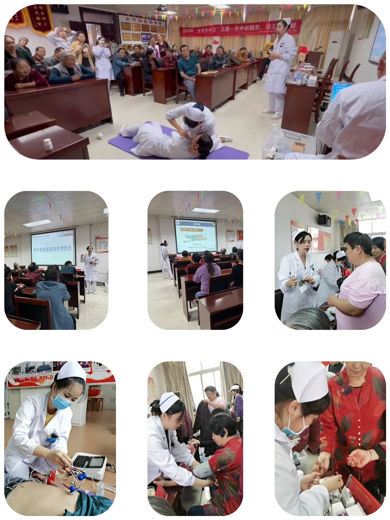 脑心健康管理师团队为市民免费量血压、测血糖、做心电图、教授大家“中风120”识别法、现场演绎脑卒中家庭急救情景剧,发放脑卒中防治手册健康科普资料200余册,学习中风防治知识。