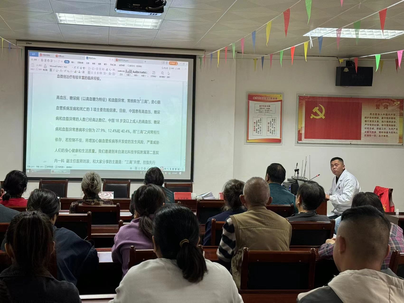 活动现场,内一科副主任刘浪介绍了脑卒中的常见症状和预防方法。他指出高血压、糖尿病、高血脂、吸烟等都是脑卒中的重要危险因素,给居民带来了一场浅显易懂,深入浅出的脑卒中健康科普知识讲座,大家都表示受益匪浅。