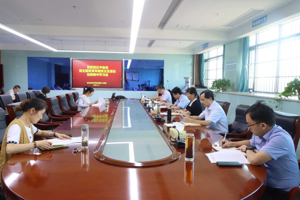 会上,党委副书记兼副院长陈克全同志传达学习了《深刻领会党中央关于党的建设的重要思想 不断提高组织工作质量》重要讲话精神,纪委书记曹若愚同志传达学习了《县以上党和国家机关党员领导干部民主生活会若干规定》,副院长陈明、曹文韬同志围绕习近平总书记关于对主题教育的实效进行科学、客观评估的重要讲话精神做研讨发言。