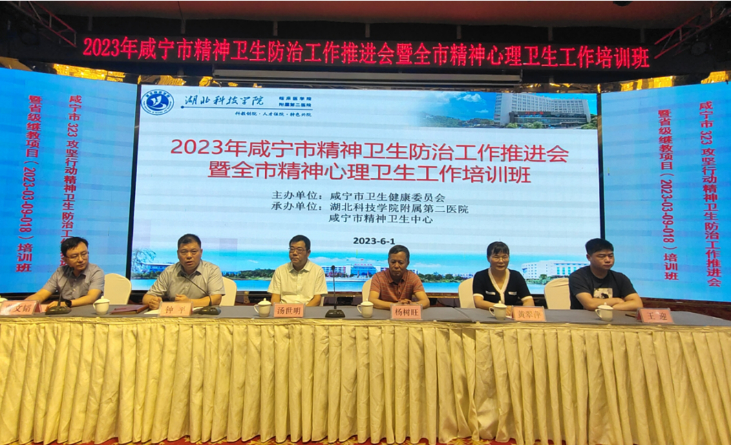 (通讯员 何招娣)为全面贯彻落实《省人民政府办公厅关于印发湖北省影响群众健康突出问题“323”攻坚行动方案的通知》、《关于印发湖北省2022年中央财政精神卫生和慢性非传染性疾病防治项目实施方案的通知》文件精神,进一步推进咸宁市“323”攻坚行动精神卫生防治工作,不断提高基层精神卫生防治工作人员治疗管理水平及精神病专科医院医护人员诊疗水平,促进我市精神心理卫生事业健康发展。6月1日-2日,由市卫健委主办、UG环球国际附属第二医院(市精神卫生中心)承办的2023年精神卫生防治工作推进会暨湖北省精神障碍社区综合防治技术培训班在咸宁温泉圆满召开。