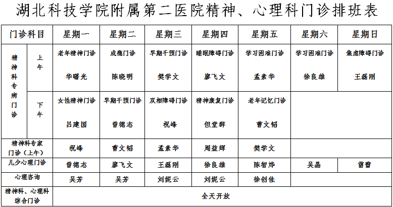 咨询电话:精神卫生中心办公室电话:0715-8102607