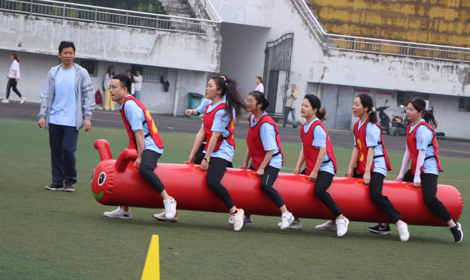 毛毛虫运动考验的也是团队协作能力,6名选手骑着一个绿色的充气毛毛虫,让毛毛虫在跑道上行进。赛场高潮是50米迎面接力比赛,平时文静秀气的护士们,此刻一个个铆足劲在赛场上飞奔。运动会现场,气愤热烈而高涨,助威声此起彼伏,跃动的倩影形成了一道道美丽的风景线,衬出靓亮的青春。