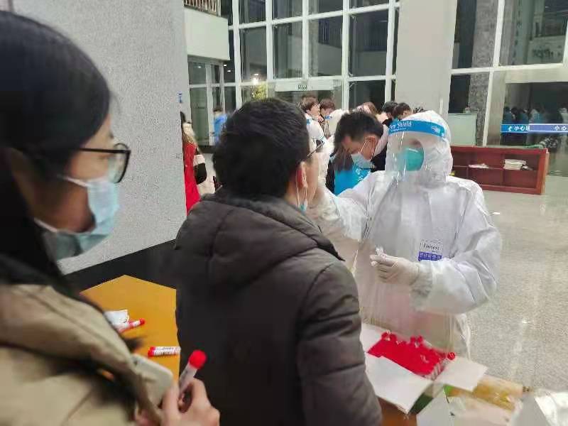 “麻烦取一下口罩,嘴巴张大,啊……”简单的几句话,采集队员们面对被检测人员重复了上千遍,没有一个人说苦叫累。