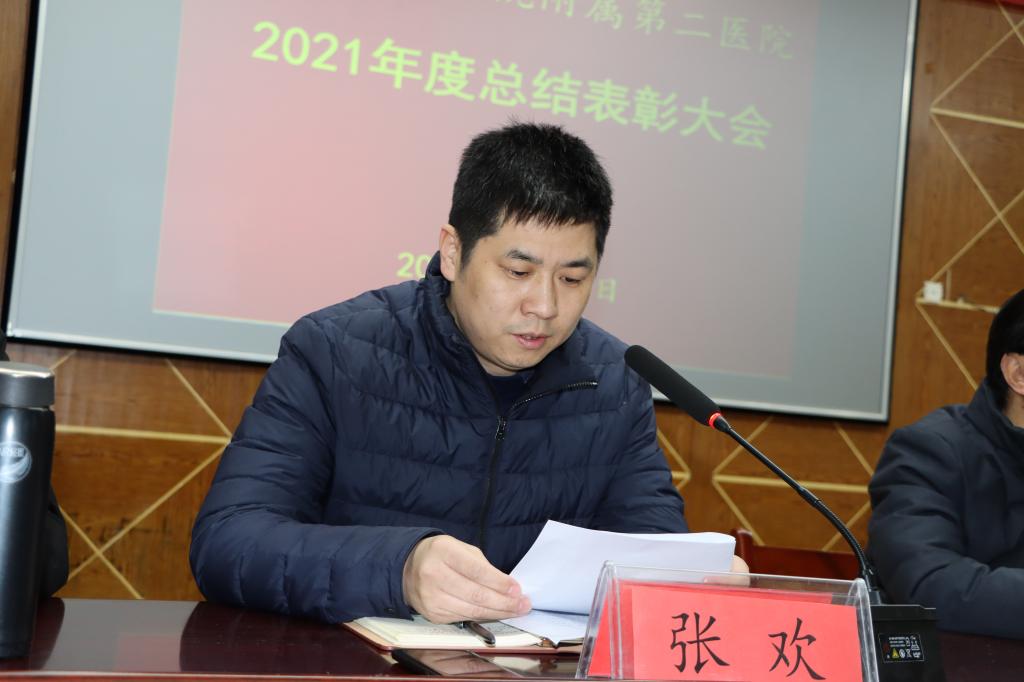 会上,张欢宣读《关于表彰二0二一年度先进集体和先进个人的通知》,大会对党政办公室等12个先进集体,黄忠等106名先进个人进行了表彰,大会号召全院职工向先进学习。