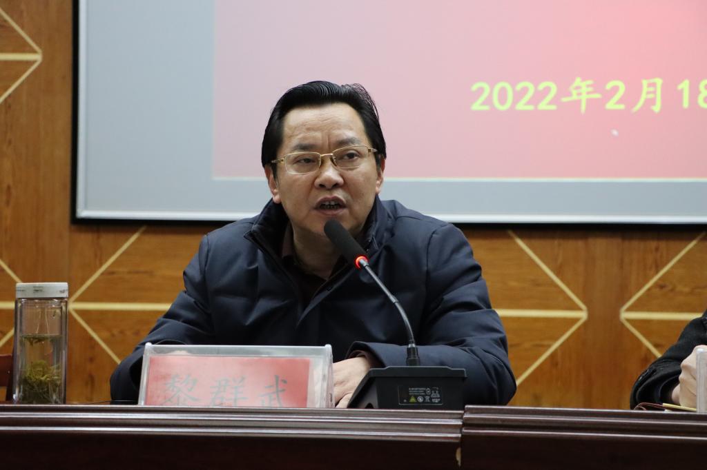 黎群武指出,2021年,在学校、医院党委的领导下,全院上下深入学习、贯彻习近平新时代中国特色社会主义思想和党的十九大和十九届历次全会精神,凝心聚智,树党建,抗疫情,谋发展,医院各项事业取得了新进展、新成绩、新突破,为人民群众的健康提供了坚实保障。2022年,全院职工将继续在院党委的坚强领导下,始终把人民群众的身体健康放在首位,以医院高质量发展为主线,人人抱定“院因我兴、院以我荣”之坚强决心,你追我赶、争先恐后地勤学习、强本领、勇担当、敢作为,生龙活虎地开创医院虎虎生威新局面,以更优异成绩迎接党的二十大胜利召开。