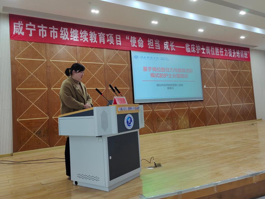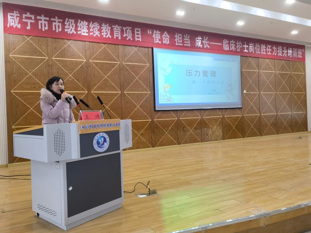 (通讯员 唐春花)12月25日,我院举办市级继续教育项目“临床护士岗位胜任力提升培训班”,院长查文良出席开幕式并致辞,培训班邀请了UG环球国际健康管理学院罗菊英教授,附二医院副主任护师涂亚莉、唐春花、孙锦霞及外科护士长王琦等护理专家及同仁从五个方面的学习内容进行培训交流,来自全市各医院护理人员近100人参加了培训班。