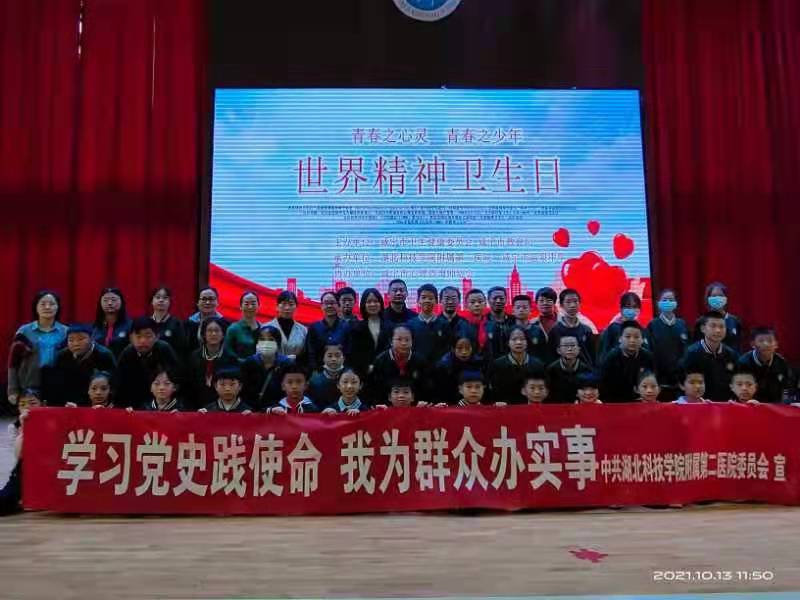 (通讯员 程仁杰 赵红波)10月13日,由咸宁市卫健委、咸宁市教育局主办,UG环球国际附属第二医院、咸宁市温泉中学承办,咸宁市心理咨询师协会协办的“青春之心灵 青春之少年”世界精神卫生日儿童青少年身心健康宣教活动在温泉中学举行,该活动为广大儿童青少年提供了多方位的健康宣教咨询服务,为儿童青少年心理健康撑起一片“晴天”,此举是我院深入开展党史学习教育“我为群众办实事”实践活动之一。