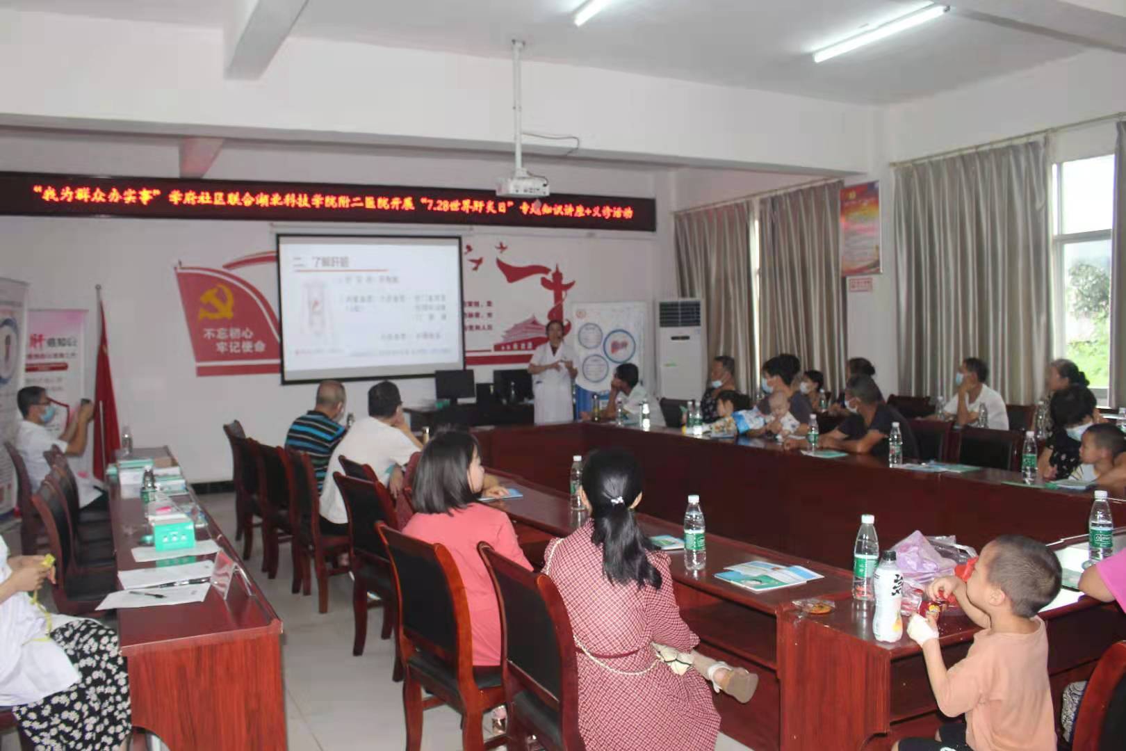 7月28日是第11个“世界肝炎日”。今年我国“世界肝炎日”的宣传主题是“积极预防,主动检测,规范治疗,全面遏制肝炎危害”。为号召社会各界积极行动起来,关注肝炎防治工作,共同抗击肝炎,当日,温泉学府社区新时代文明实践站联合我院开展“7.28世界肝炎日”专题知识讲座+义诊活动,惠及全社区居民。