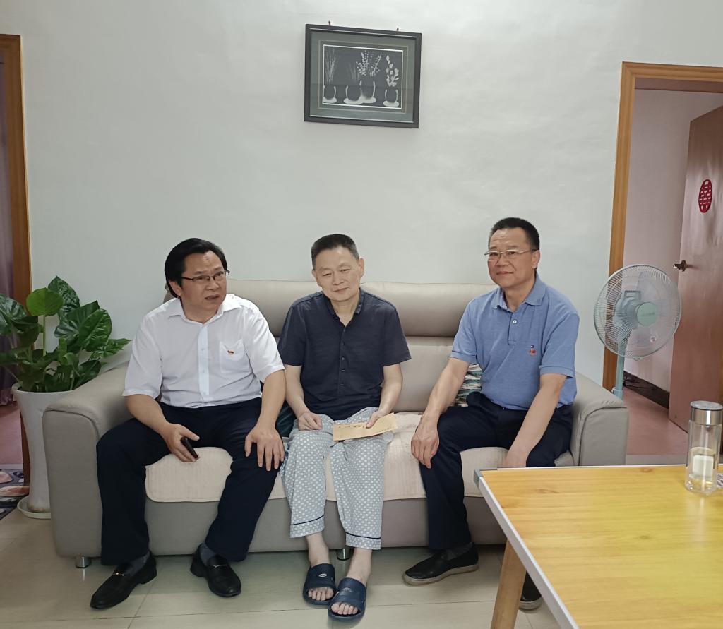 上图:校党委常委、副校长钟儒刚(右)、院党委书记黎群武(左)慰问困难党员鄢爱平(中)
