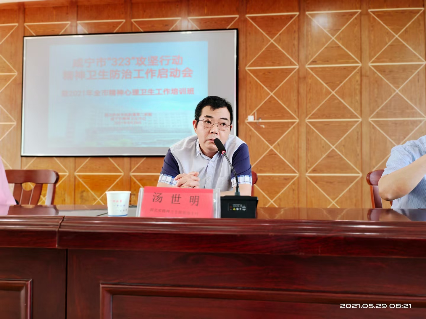 (通讯员 赵红波)为做好我市严重精神障碍治疗管理及社会心理服务体系建设工作,提高基层精神病专科医护人员诊疗水平,促进我市精神心理卫生事业发展,5月29日,咸宁市“323”攻坚行动精神卫生防治工作启动会暨2021年全市精神心理卫生工作培训会在我院召开。
