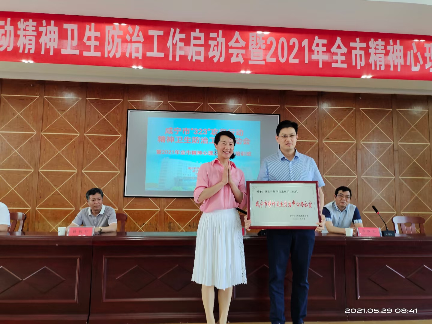 上图:市卫健委授予我院“咸宁市精神卫生防治中心办公室”