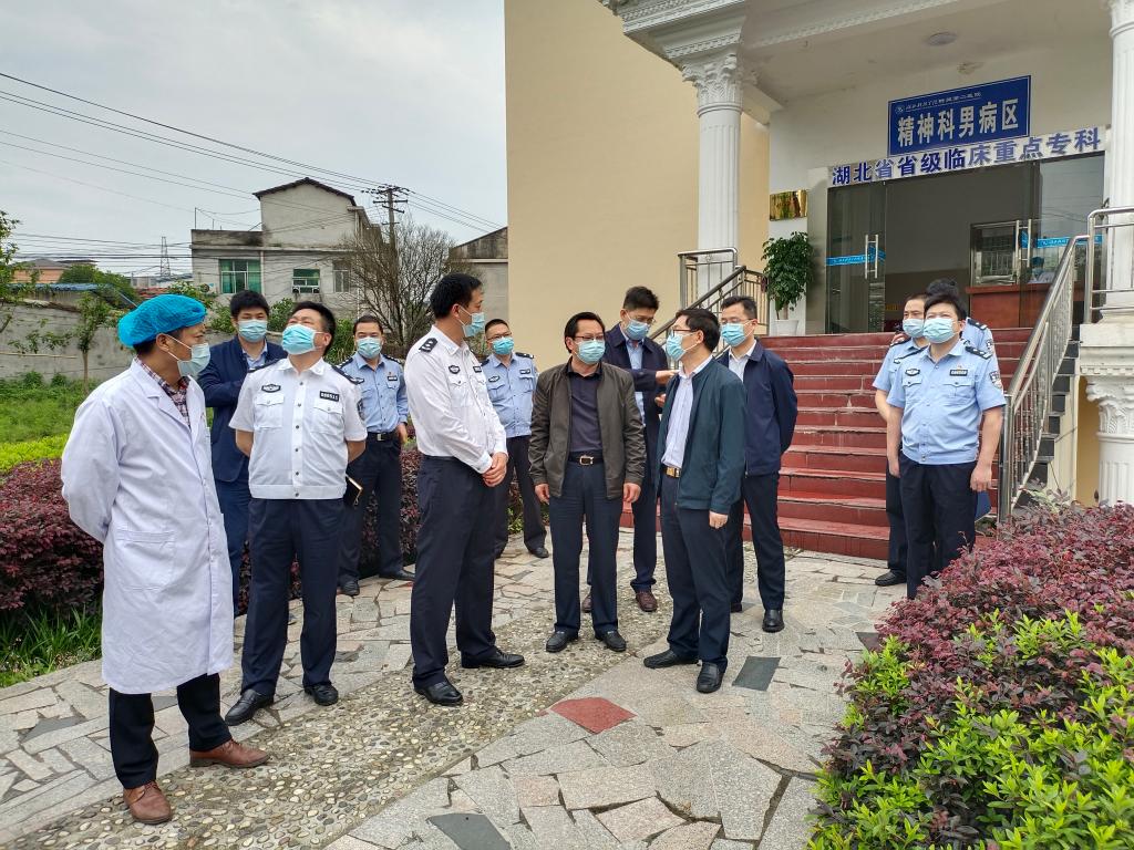 5月18日下午,咸宁市委副书记、政法委书记张士军,副市长、公安局局长肖天树来我院就严重精神障碍患者救治、公安特殊病人监管工作进行调研。我院党委书记黎群武、院长查文良、党委副书记兼纪委书记张欢参加调研。