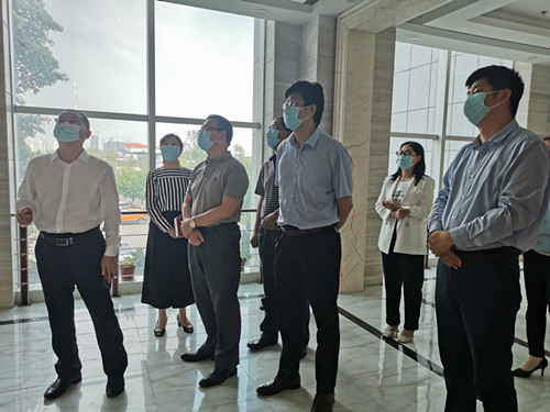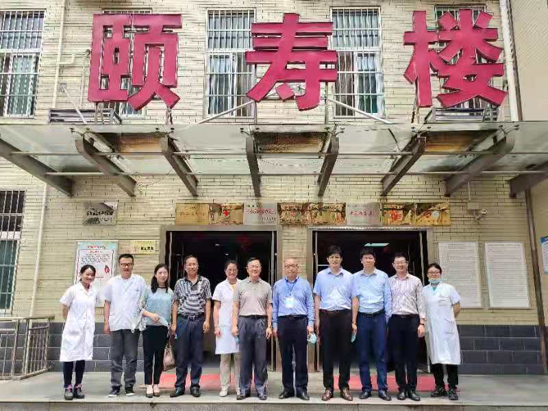 在孝感市康复医院,白育庭一行听取了该院院长左祖俊和湖科校友、副院长陈强庆就医院医养模式、病房管理、业务开展等方面的介绍,并实地查看了医院发热门诊、隔离病房、生化实验室、老年科、心理学科等,对医养工作管理服务模式等情况进行详细了解。