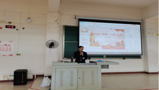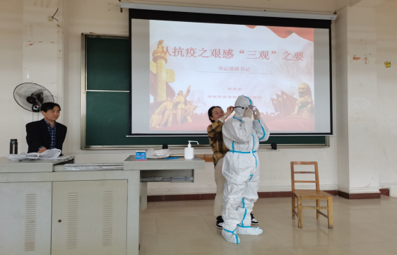 陈克全作了以“从疫情之艰,感‘三观’之要”为题的宣讲活动。他如何正确穿戴防护服,从穿脱防护服的繁杂,让同学们亲身体验到疫情期间医护人员的艰辛与伟大,并结合抗疫亲身经历,启发同学们牢记党的宗旨,全心全意为人民服务,坚定远大理想信念,树立正确的人生观、世界观和价值观。