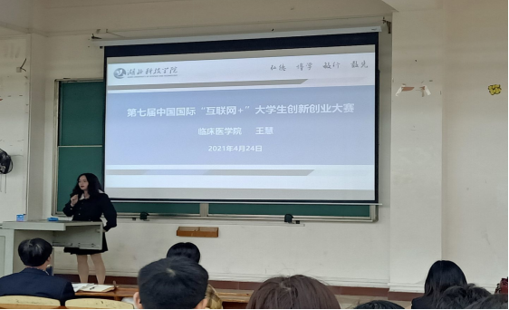 辅导员王慧老师详细介绍“互联网+”大学生创新创业大赛的申报相关事项。她为同学们介绍了“互联网+”是什么,比赛的赛道、报名形式、报名材料和人员安排,从身边人的参赛经验重点为同学们讲述了“互联网+”创新创业大赛的定位和团队人员的分工,从不同角度对大赛进行了全面详细的解读,鼓励同学们积极参与,勇于创新。