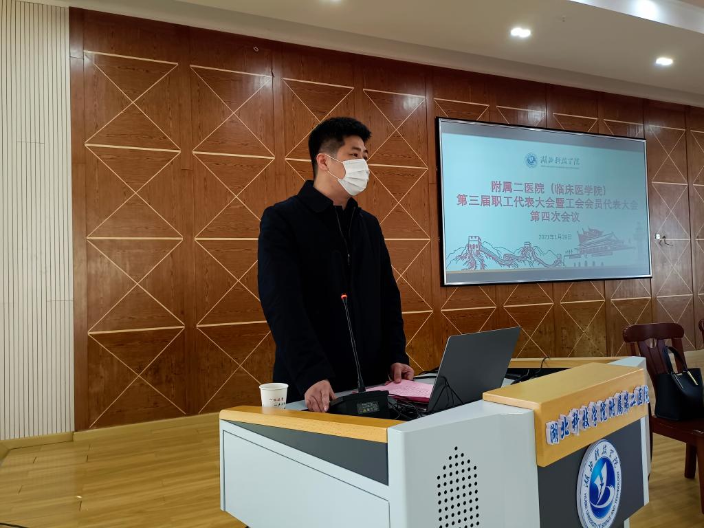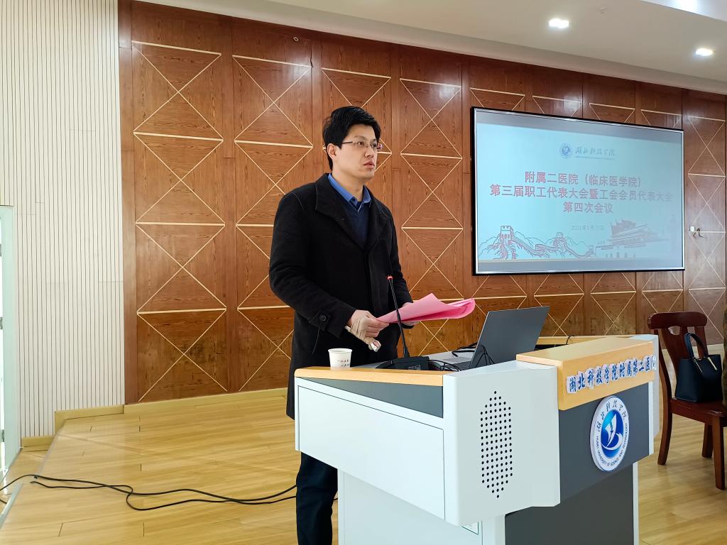 张欢作工会工作报告。他表示,院工会将继续发挥职代会、工会自身优势,牢记初心使命,勇于担当作为,广泛动员全院职工,统一思想,凝心聚力,锐意进取,开拓创新,为医院(学院)高质量发展做出新的更大贡献。