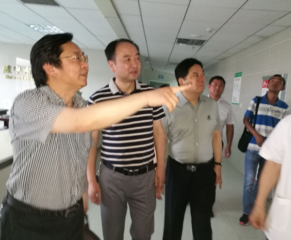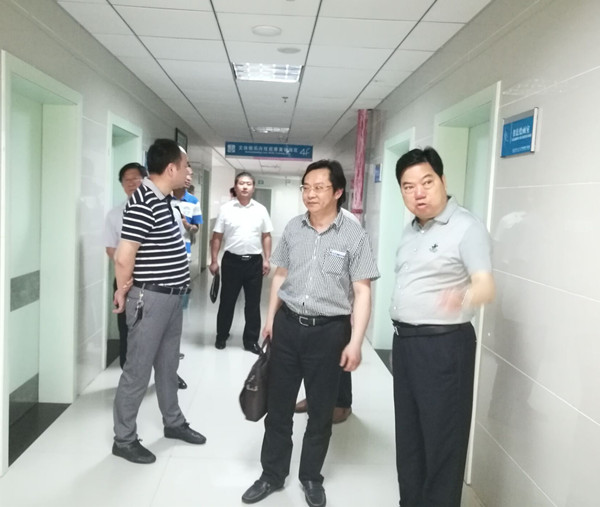 上图:李建国书记(左二)、余丙清主任(左三)在黎群武院长陪同下察看心理科