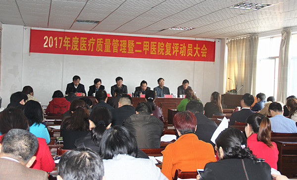 为进一步加强医院质量管理,促进医院内涵建设,确保二甲医院复评顺利通过。4月12日下午,我院隆重召开2017年度医疗质量管理暨二甲医院复评动员会,书记、院长黎群武教授、常务副书记刘祖松、副院长余开湖、陈克全、余后火、梅武轩出席会议,全院中层干部及中级以上职称人员参加会议,会议由常务副书记刘祖松主持。
