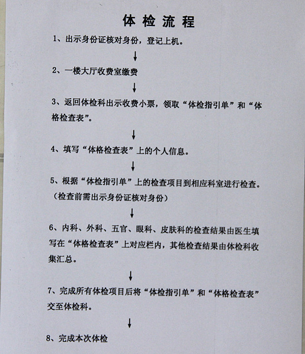 上图:检前核对身份上图:排队交费上图:排队验血上图:体检须知上图:体检流程