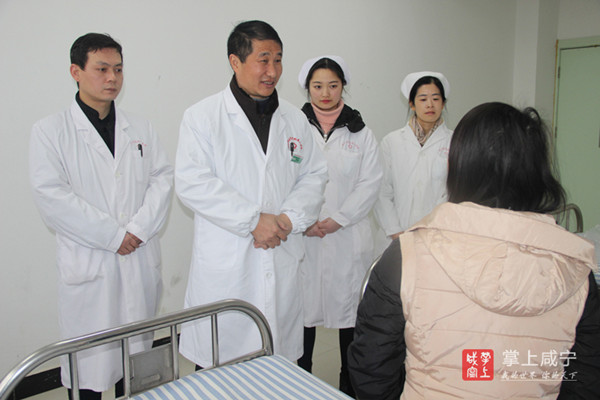 春节期间,精神科女病区主任曾德志教授牺牲休息时间,深入科室,认真查看患者病情,对他们嘘寒问暖,关爱有加。