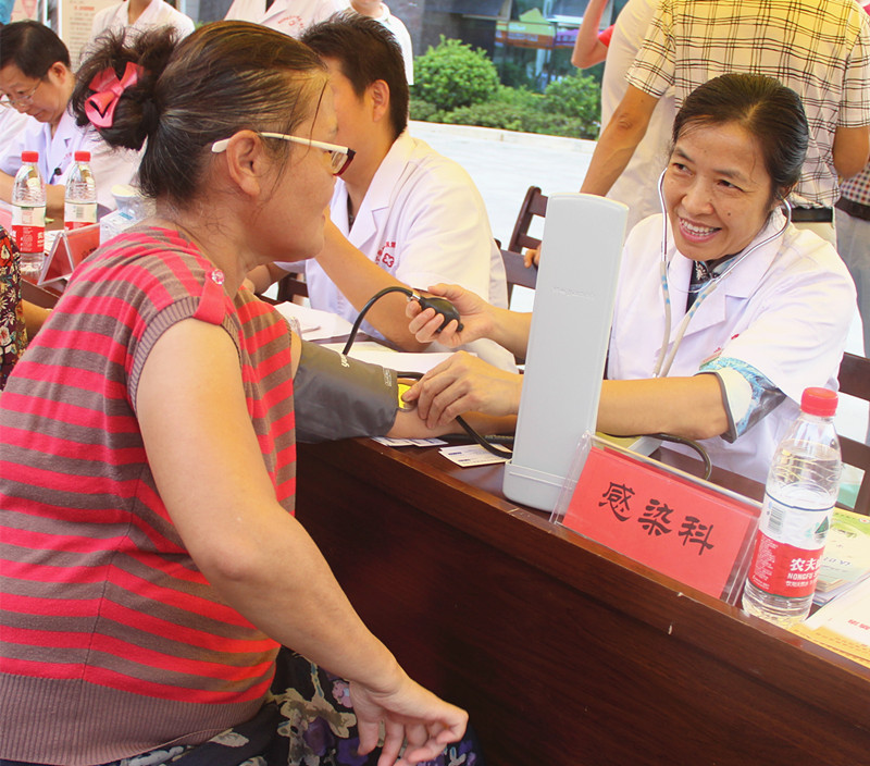 为纪念红军长征胜利80周年,9月3日上午,由市卫计委主办,UG环球国际附属第二医院承办的以“传承长征精神,义诊服务百姓”为主题的大型义诊活动在我院新门诊综合业务大楼广场拉开了序募。 来自咸宁市中心医院、UG环球国际附属第二医院、咸宁市中医医院、咸宁市妇幼保健院、咸宁市结核病防治院、解放军第一九五医院、咸宁市疾控中心、咸宁市中心血站等8家医疗机构40余名医、护、药专家组成的医疗队参加此次送医送药义诊活动。 我院作为本次义诊承办单位,对本次活动高度重视,派出了由院常务副书记、精神科主任医师刘祖松教授,五官科吴立连教授,感染疾病科余琼华教授,中医康复科胡荣教授,外科主任医师赵正据,内科副主任医师彭圣威、儿科副主任医师周红,妇产科副主任医师施玲、心理咨询师吴芳等各自领域经验丰富、技术精湛的医疗专家队伍坐诊,深受广大群众欢迎和信任,前来问诊的人群络绎不绝。当天,我院医疗队共接受咨询和诊治病人200余人次,免费赠送药品2000余元,发放医疗知识宣传手册100份,成为当日诊治人次、发放资料最多的医院。 当天是义诊活动周启动日,各级领导非常重视。咸宁市卫计委副主任杨文功,UG环球国际附属第二医院院长兼书记黎群武教授及参加本次义诊活动医疗机构相关领导出席启动仪式并现场指导工作。 此次义诊周活动,从9月3日至9月10日。旨在方便群众看病就医,推动卫生系统深入学习贯彻落实“两学一做”学习教育要求,进一步树立其良好的形象,通过组织对红军老战士进行慰问、体检和义诊,以实际行动纪念红军长征胜利80周年,促进义诊健康扶贫工作,逐渐形成常态化的义诊工作机制和模式。