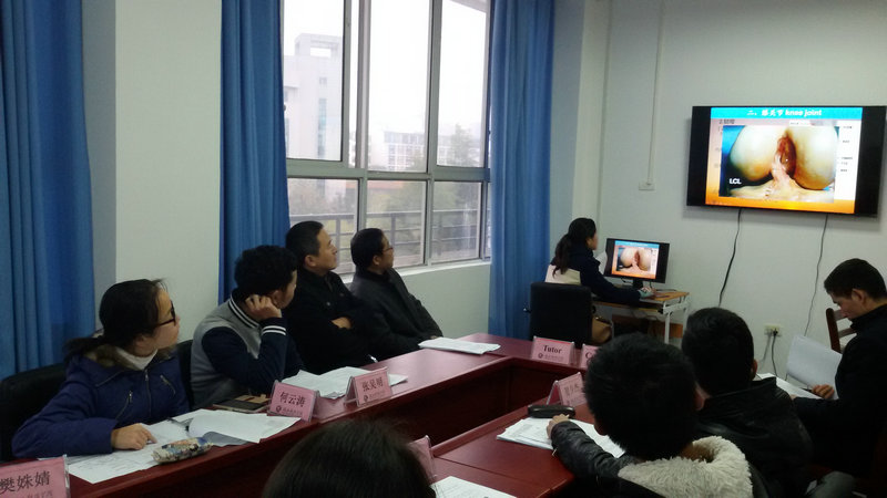 图四 学生利用解剖教具演示髋关节置换术
