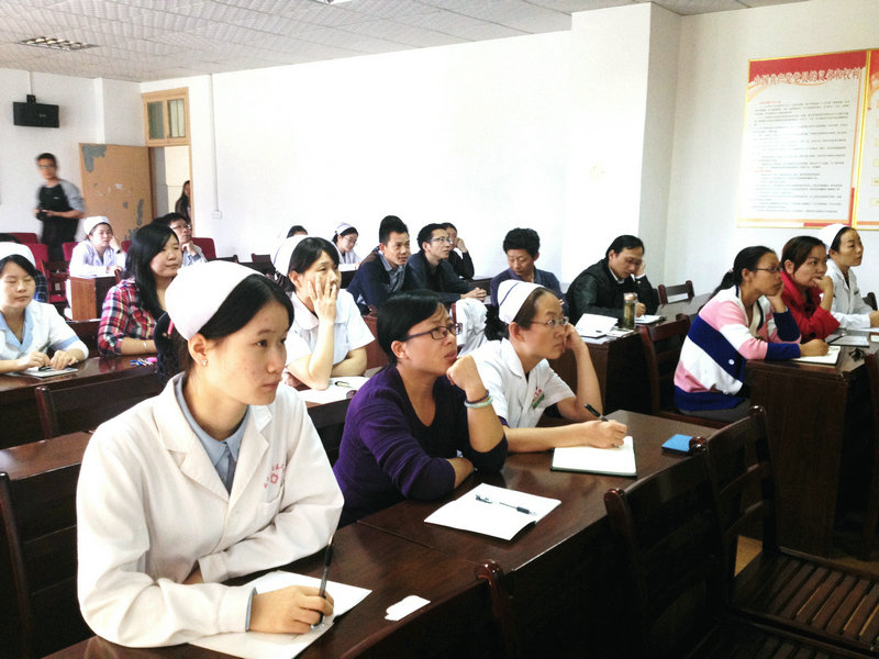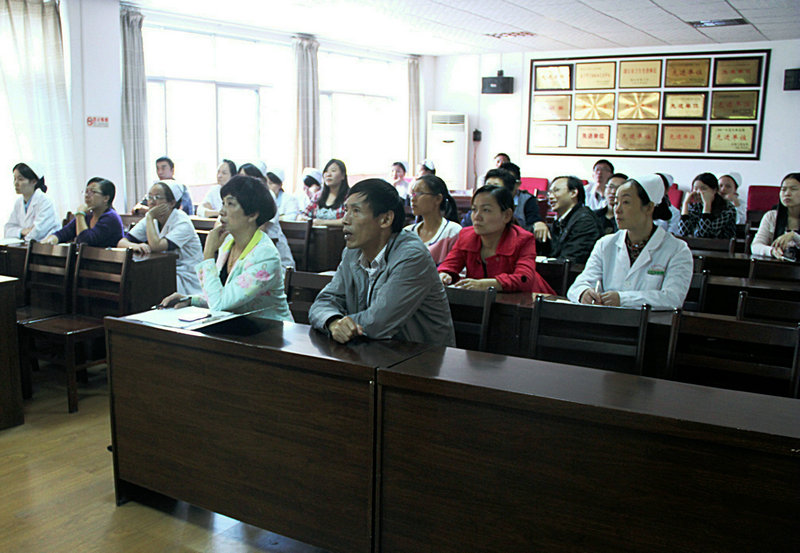 居民健康卡操作技术培训分管院长余后火主持培训飞博科技工程师余昶作培训医护人员及相关科室工作人员聚精会神听讲