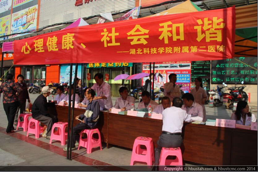 为进一步提高人民的心理健康水平,引导公众关注心理健康,在第23 个世界精神卫生日10月10日上午,我院精神科和综合科专家等20余人一行在温泉中心城区(中百仓储对面)开展以“关爱心理健康 促进社会和谐”为主题的大型义诊活动。专家们在热闹的人群中耐心为他们解答关于心理卫生方面的各种疑问,包括抑郁、焦虑、人格、强迫、睡眠等多方面的心理问题,并现场免费为患者发放精神卫生方面的宣传资料、书籍和价值1万余元的精神药品。据统计,当天约有200余人次前来咨询。 通过此次活动,进一步普及了精神卫生知识,增强了市民精神心理健康意识,对促进我市和谐社会建设具有重大意义。