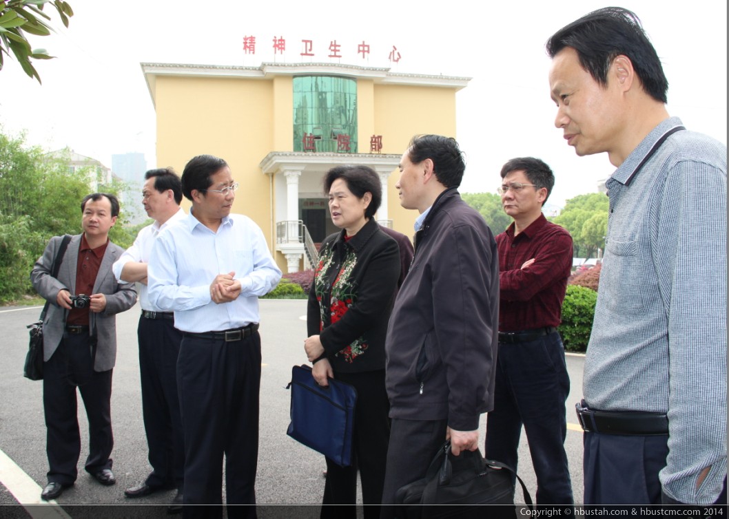 2014年4月15日 下午,省人大常委会委员、教科文卫委员会副主任委员袁军晶,省卫计委副主任刘望清等一行,在市卫计委主任王勇、副主任梁春阳等领导的陪同下,来到UG环球国际附属第二医院(咸宁市精神病医院)就贯彻落实《中华人民共和国精神卫生法》和精神卫生工作开展情况进行实地调研。袁军晶主任首先深入到精神病人住院的病区现场察看和了解情况,听取院长高卉的情况汇报,同医务人员进行交流、询问病人治疗与生活情况。随后,对咸宁贯彻落实《中华人民共和国精神卫生法》和精神卫生工作开展情况给予了充分肯定,并鼓励大家要继续做好该项工作,进一步完善工作规范,强化救治职责,健全保障机制,建立政府主导、部门合作、社会参与的救治长效工作机制,为患者家庭和社会排忧解难。 参加此次调研的省领导还有省人大教科文卫委、省卫计委、妇联等部门的其他相关领导。