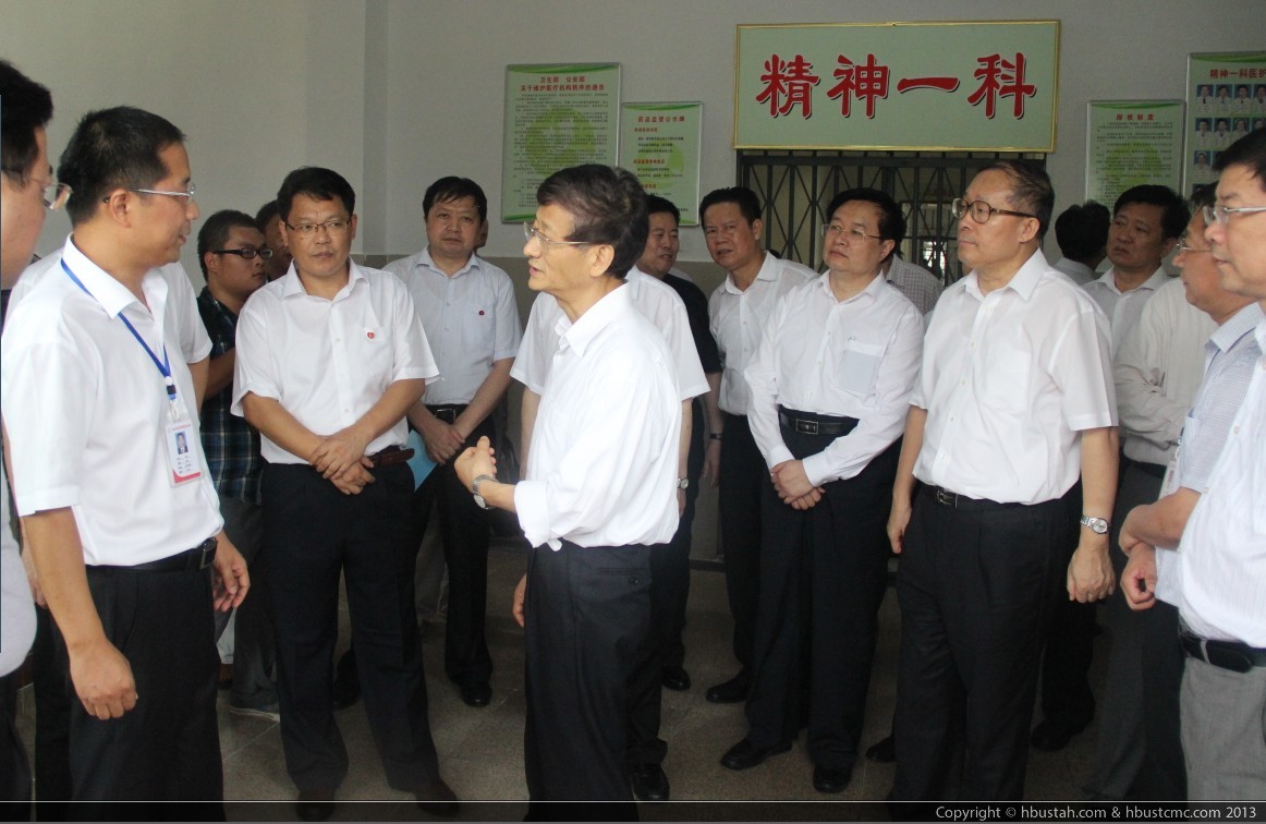 金秋咸宁,丹桂飘香;温泉大地,万物呈祥。 2013年9月23日 下午,中央政治局委员、政法委书记、综治委主任孟建柱,中央政法委秘书长、国务院副秘书长汪永清,最高法院院长周强,最高检察院副检察长邱学强、公安部副部长刘金国等一行,在省委书记李鸿忠、省长王国生,市委书记任振鹤、市长丁小强等领导的陪同下,来到UG环球国际附属第二医院(咸宁市精神病医院)调研易肇事肇祸精神病人救治工作开展情况。 孟书记首先来到救治宣传展板前,详细观看展板的情况汇报、群众心声、救治流程、救治成效等方面的介绍。接着,深入到精神病人住院的病区现场察看和了解情况,听取附属第二医院院长高卉的情况汇报,同医务人员进行交流、询问病人治疗与生活情况。随后,在精神科大厅与陪同的省市和校院领导与专家交谈。充分肯定咸宁市易肇事肇祸精神病人救治模式和取得的成效。明确指出咸宁模式的特色,就是“花小钱,保平安、维稳定;政府集中救治,极大地降低了社会管理成本”。特别强调要积极适应小康社会新要求和人民群众新期待,下大气力解决影响社会和谐稳定的突出问题,加强源头性基础性工作,在更高起点上全面推进易肇事肇祸精神病人救治工作。随同的省委书记李鸿忠接着说,“我们将在全省组织学习咸宁经验,积极推广咸宁模式”。 精神病人随时可能成为威胁他人与社会安全的隐患,造成恶性突发事件,是影响和制约平安建设的一个重要因素。咸宁市委、市政府高度重视易肇事肇祸精神病人救治工作,积极探索社会管理新模式,按照“政府主导、部门联动、综合治理、齐抓共管”的原则,市政府办印发了《咸宁市易肇事肇祸精神病人政府救治管理实施办法》(咸政办发[2010]117号),从2010年4月起,对全市易肇事肇祸精神病人集中救治管理,已形成由政法委、公安、卫生、财政、民政、残联、医院和社区等多个单位参与的咸宁模式。通过几年来的探索积累,形成了 “ 政府有机构、管理有组织,救治有秩序、实施有方案,救治有经费、困难有办法,工作有机制、维稳有创新”的咸宁经验。2010年6月2日,孟建柱同志在看到《湖北咸宁开展易肇事肇祸精神病人救治工作汇报》后,随即批示“咸宁的做法很好,具有普遍意义,建议综治办牵头,予以总结推广”。 参加此次调研的领导还有省委政法委书记张昌尔,省公安厅长曾欣,市委政法委书记陈树林,市政府秘书长夏福卿,UG环球国际校长吴基良等。 我们坚信,咸宁易肇事肇祸精神病人救治工作,有上级领导的关怀,市委市政府的重视,人民群众的期待,医务人员的共同努力,将更加彰显平安咸宁建设特色,成为社会管理创新亮点,促进党的群众路线教育实践活动的深入开展。(王天龙)