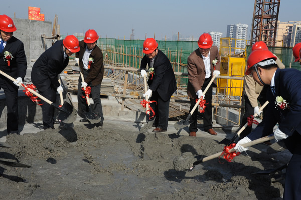 11月6日上午,在一阵阵礼花鞭炮声中,附属第二医院、咸宁市精神病医院综合大楼项目主体结构喜封金顶。该综合业务大楼建设项目是获国家发改委批准的建设项目,总投资3681万元,其中中央预算内专项资金投入2100万元。大楼于2011年7月28日开工兴建,大楼整体设计9层,建筑面积为1.6万平方米,分为综合门诊和精神科住院病房,预计明年6月竣工投入使用,届时医院病床将增加200张,总床位达到500张以上。该项目建成后,将极大缓解全市精神病患者就医需求,为全面提升该院医疗服务水平提供了有力保障。校领导出席典礼。