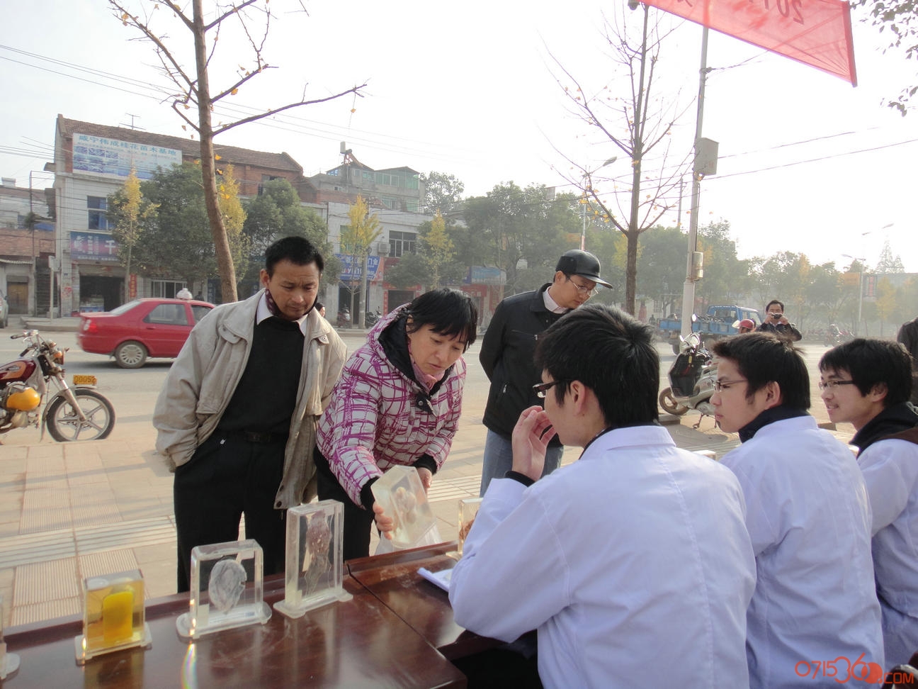 12月4日,咸宁学院病理学教研室和附属第二医院在附院门口联合开展健康宣传咨询活动,以病理学大体标本为媒,向市民介绍疾病的发生、发展和预防。并为市民测量血压,身高和体重,受到广大市民欢迎。