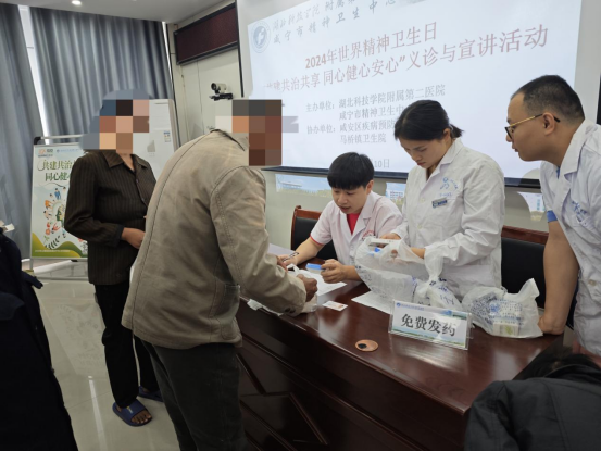 讲座结束后的药品发放环节,更是让这份关爱落到实处。我院精心准备的各类精神类药物,经由精神二病区主任樊学文逐一复核诊断后发放至患者手中。每一次握手,每一句问候,都饱含着深深的情谊与尊重。樊学文耐心听取患者近期的情况反馈,根据病情变化适时调整药方,力求每位患者都能获得最为精准的治疗。