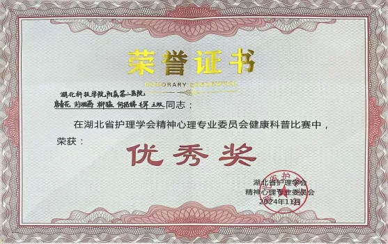此次获奖,充分展现了我院护理团队在健康科普宣教工作中的专业素养和创新能力。今后,附二医院将继续发挥学科优势促进健康知识普及,持续开展健康科普工作,不断加强心理健康科普人才队伍的建设和锤炼,不断创新心理健康科普的形式和内容,持续提升居民健康素养水平,为健康咸宁建设贡献附二力量。
