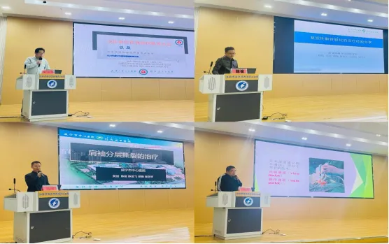 会上,胡戈亮教授为大家分享了《脊柱疼痛疾病的手术选择和围手术期处理》;吴剑主任讲解了《肩袖分层撕裂的修复原则》;陈俊主任带来了《复发性髌骨脱位的诊疗经验分享》。本院的赵正据教授,张柘、冯博医生分别就脊柱和关节微创等方面的内容进行报告和病例分享。会议间隙,大外科党支部书记王琦做了《党建引领赋能业务发展路径探索》汇报,就党建与业务融合发展情况进行交流分享。
