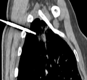 患者张女士(化名)在门诊CT检查时,发现右肺上叶占位性病变。经详细讨论并与患者及家属充分沟通后,决定实施肺结节活检穿刺术。
