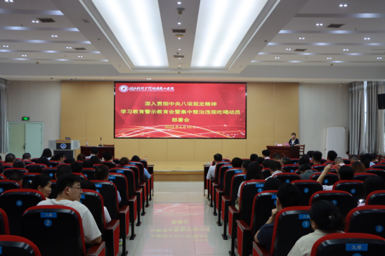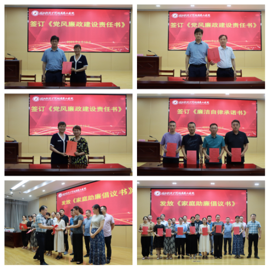 会上,全体与会人员观看警示教育片《啃噬》。纪监审办主任李永红通报2起干部违规吃喝典型案例。纪委书记曹若愚以《加强党的作风建设,锲而不舍落实中央八项规定精神》为题讲授专题党课。与会领导与相关责任部门、科室签订《党风廉政建设责任书》《廉洁自律承诺书》,曹若愚为部分职工代表及家属发放《家庭助廉倡议书》。