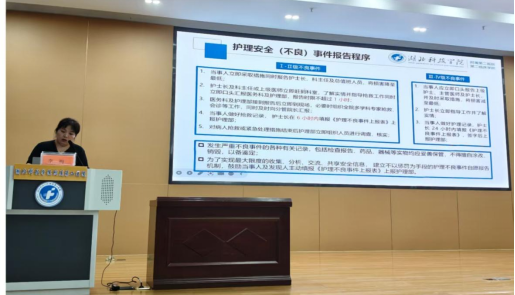 培训围绕临床护理关键安全与法律议题展开。护理部主任唐春花以《护理文书书写中的潜在法律问题与思考》为主题,结合典型案例,剖析护理文书作为法律证据的重要性,点明书写风险点,强调规范书写要求。护理部副主任李梅带来《护理不良事件的管理》讲座,系统讲解不良事件定义、分类、上报流程及根本原因分析方法,倡导“非惩罚性上报” 与 “持续改进” 理念,挖掘不良事件对提升护理质量的价值。