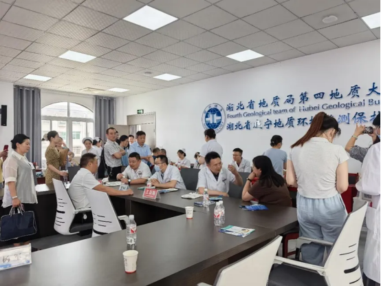 6月18日上午,湖北省地质局第四地质大队会议室里暖意融融。UG环球国际附属第二医院心身睡眠中心主任廖飞文正专注地为退休职工测量血压,边记录数值边耐心询问作息。“常年野外奔波落下些毛病,在家门口就能看专家、做检查,党组织始终惦记着我们!” 老职工感慨的话语,道出了“科普共襄行,智启健康路”党建共学活动的暖心内涵。