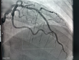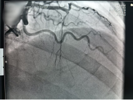14:05,患者直接从急诊科转入导管室;14:10,穿刺成功并置入血管鞘;14:13,冠脉造影显示左冠脉前降支中段急性闭塞;14:20,导丝通过闭塞病变,血管恢复血流,患者胸闷症状显著缓解。后续,医疗团队顺利完成球囊扩张及支架植入,14:40 手术结束,患者安全转入心内科监护病房。从入院到血管开通,全程仅 35 分钟,远低于胸痛中心平均救治时间。