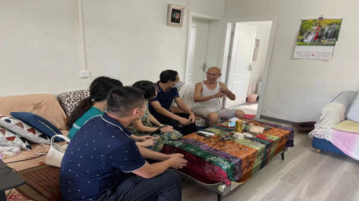 8月19日上午,放射科党支部全体党员走访慰问了咸安区凤凰社区困难老党员曹国敏同志。在曹国敏同志家中,党支部书记汪素涵详细了解了81岁的老党员曹国敏同志的身体状况和生活状况。原来,曹老的老伴6月份因脑溢血突然去世,他时常感觉孤单,且生活起居无人照料。汪素涵鼓励曹老要保持乐观心态,积极面对生活,注意身体,遇到困难可以随时与我和社区联系,我们会尽所能帮助解决。除了给老人送去精神上的慰藉和关爱,放射科党支部还给老人送来了牛奶、水果等慰问物资。曹老表示,感谢党和政府一直以来对他的关心和照顾,有了党和政府的关怀,坚定了自己的理想信念,今后会以乐观的态度,健康的身体过好晚年生活。