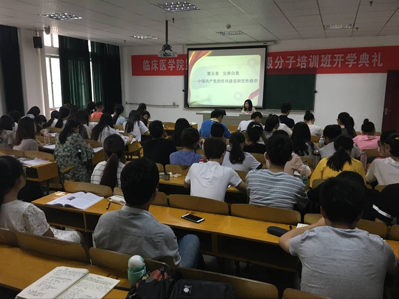 6月3日早8:30,在医药楼三栋二楼多媒体教室,UG环球国际临床医学院学生支部书记谭佼老师为大家讲授了入党积极分子培训班的第六、七讲,内容为中国共产党的组织原则与纪律和中国共产党的作风建设和党性修养。
