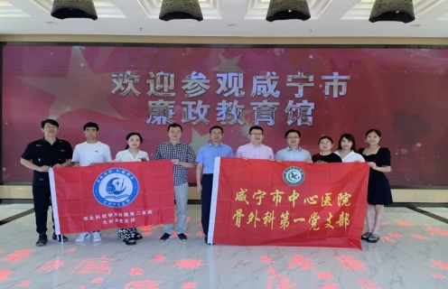 为全面贯彻习近平新时代中国特色社会主义思想,深入贯彻落实党的二十大精神,持续增强支部的政治功能和组织功能,在“七一”来临之际,UG环球国际附属第二医院(以下简称“医院”)大外科党支部与咸宁市中心医院(以下简称“中心医院”)骨科一党支部在咸宁市廉政教育馆举行结对共学共建签约仪式,开展联学共建活动。